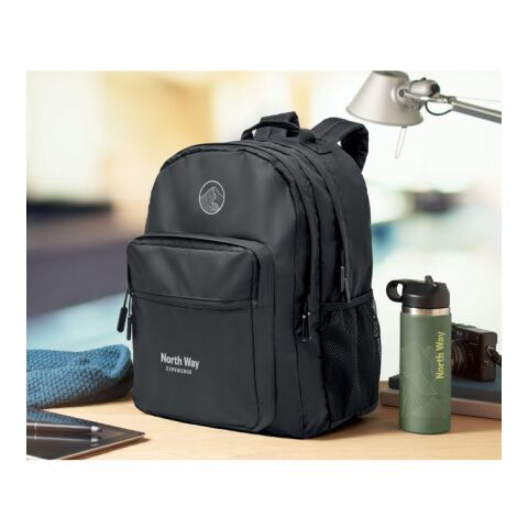 15 inch laptop backpack in 300D RPET polyester. It has 2 large zippered compartments, double zippered front pockets and mesh side pocket. Padded back, bottom and shoulder straps.Popular Products from the Category Laptop Bags