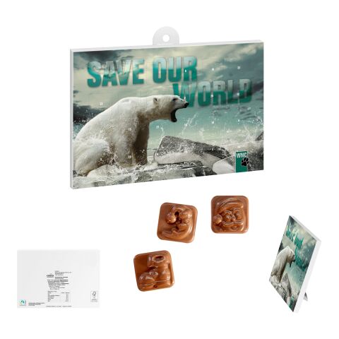 Wall and Table Advent Calender in horizontal format, stable deep-drawn sections made of 100 % recyclable mono-material with recycled content, filled with milk chocolate, 3 x glued, 24 doors. Premium Milk Chocolate, cocoa: 35 % minimum.Popular Products from the Category Advent Calendars