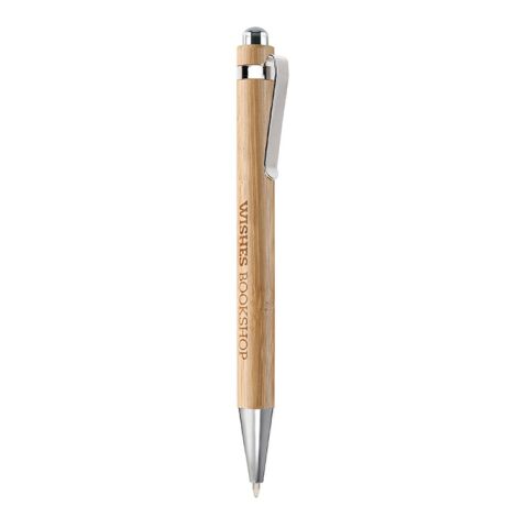 Push button ball pen in bamboo with shiny chrome fitting. Blue ink.Popular Products from the Category Bamboo Pens