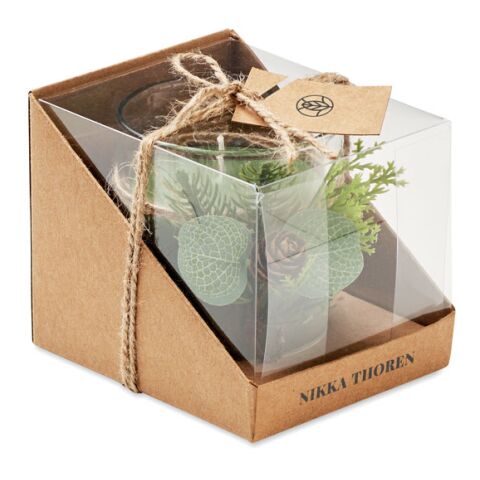 Glass candle holder (120 gr) with forest arrangement. Presented in a carton and PVC box with jute cord and kraft label. Candle included.Popular Products from the Category Gift Ideas