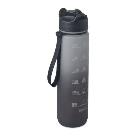 Sports water bottle in RPET with integrated straw, soft silicone mouth piece, motivational time markings, one hand opening flip top lid, safety lock and carrying strap. Capacity 1L.Popular Products from the Category Sports Bottles